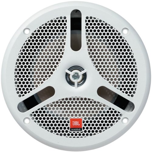 JBL Marine 180-Watt 6.5 inch White Two-way Integrated Grille Assembly Marine Speaker features peak at 180 watts, power handling RMS, 60 watts, sensitivity of 91 decibel, frequency response of 55 hertz to 20 kilohertz. It has a polypropylene woofer cone and polypropylene dome tweeter along with an integrated grille assembly. It is ultra Violet and water resistant.