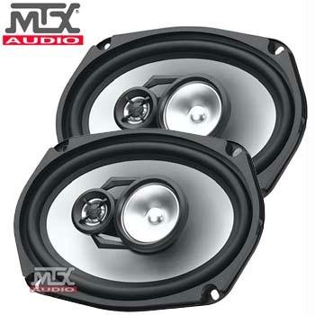Pair of Brand new MTX XT693 6 x 9" 320 Watt 3-Way Thunder Series Car Coaxial SpeakersFeatures:Thunder Series 6 x 9" 3-way SpeakersPeak: 320 watts per pair / 160 watts eachRMS: 80 watts per pair / 40 watts eachPolypropylene cone wooferImpedance : 4 ohmsMid-range Tweeter: 2-1/4"Mylar Tweeter: 1/2"Impedance: 4 ohms Frequency Response: 50 Hz - 20,000 HzSensitivity(2.83V/1M): 89 dBMounting depth: 2.95"(7.49 cm)Cut Out Diameter: 6.1" x 8.7" (15.49 cm x 22.1 cm)Rubber surroundLarge over sized magnetIncreased durability with Injection Molded Polypropylene cone wooferHigh temperature aluminum voice coil with kapton formerGrilles included : Yes